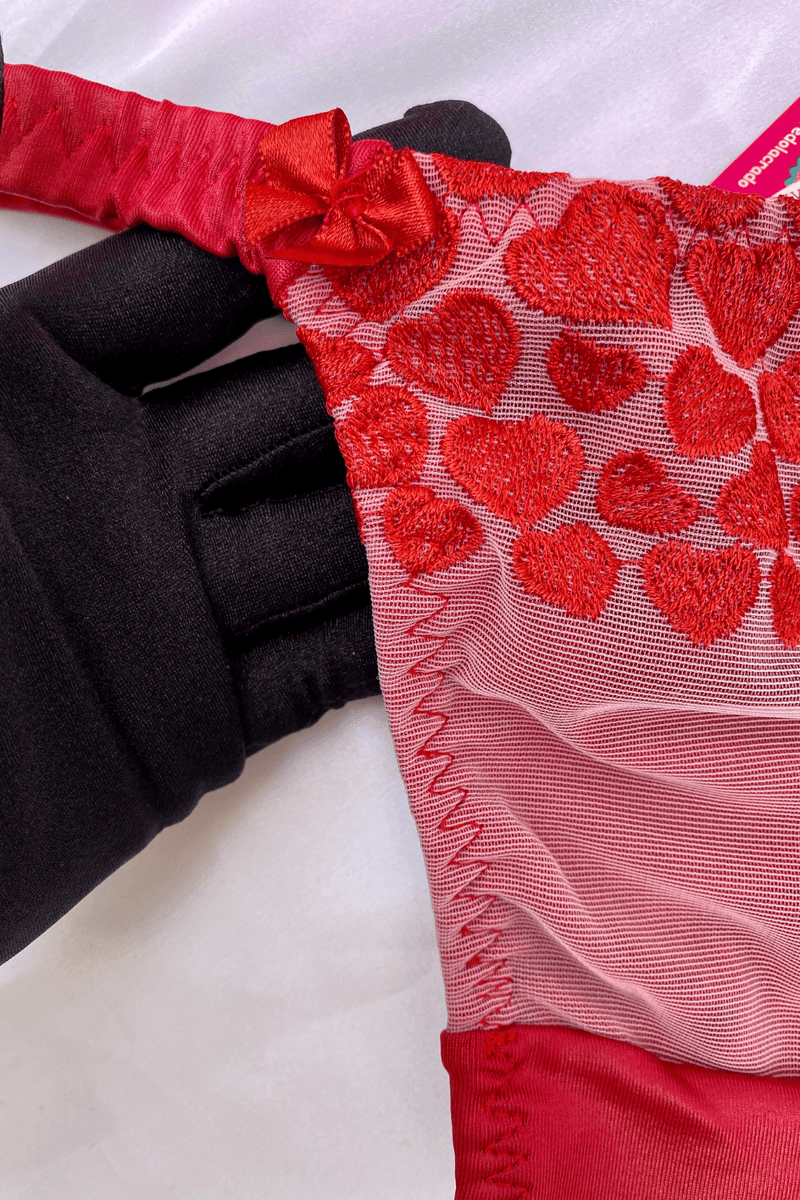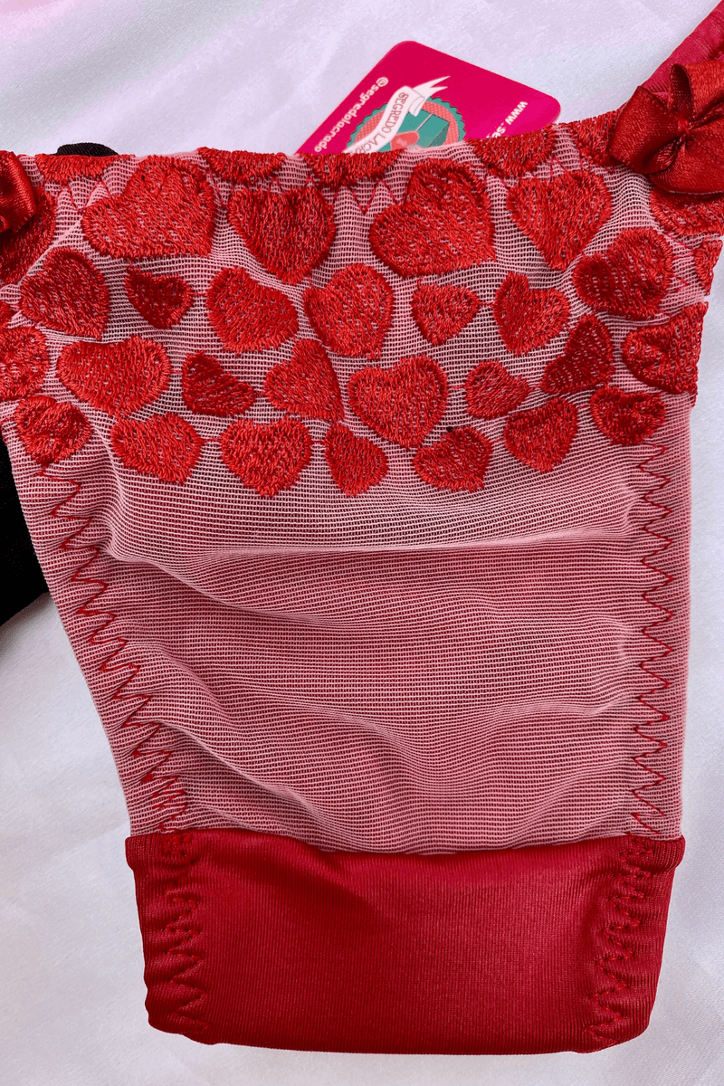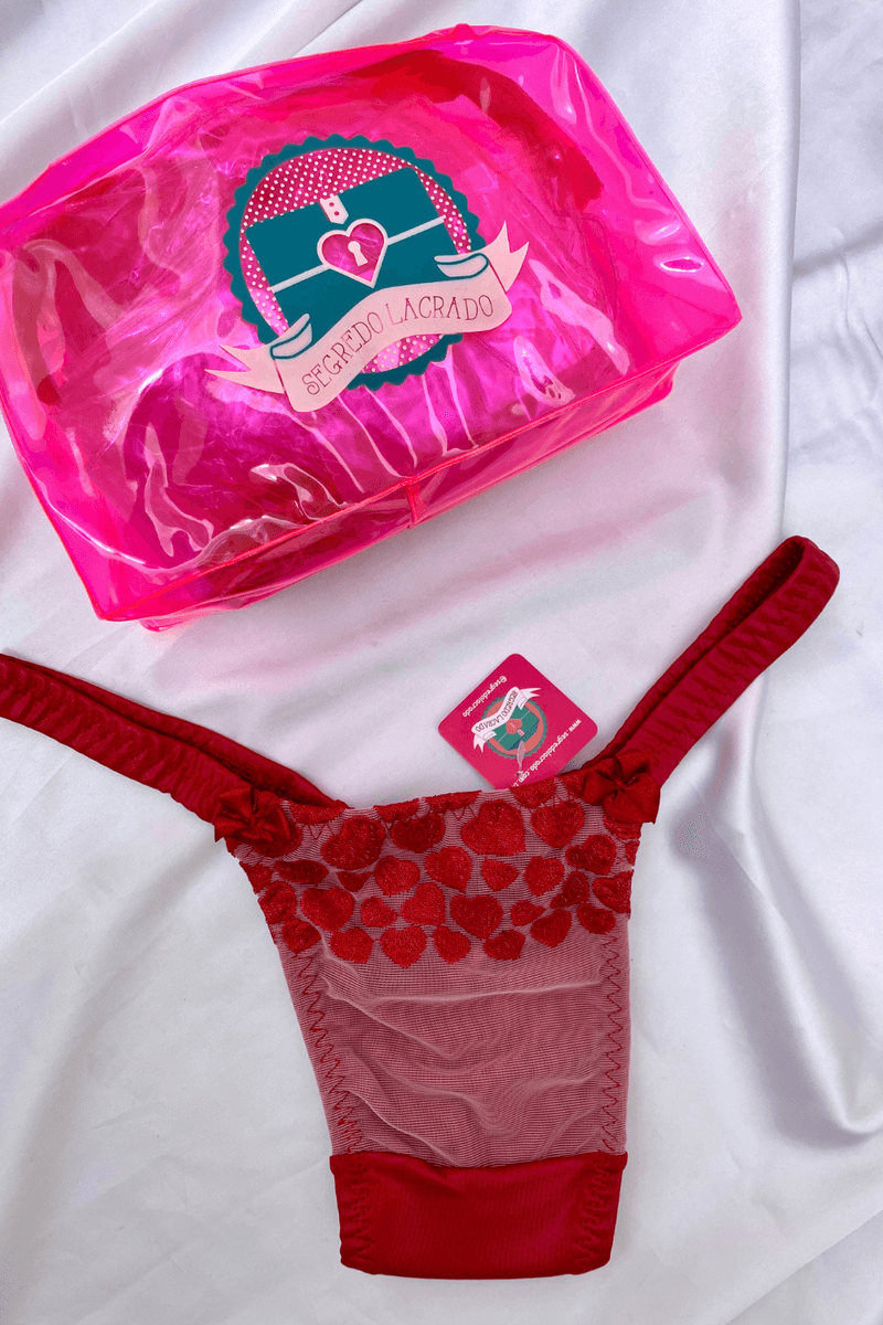 1 Calcinha trans Segredo Lacrado para aquendar, com tule bordado de coração, forro interno e super reforçadas para gerar maior conforto.